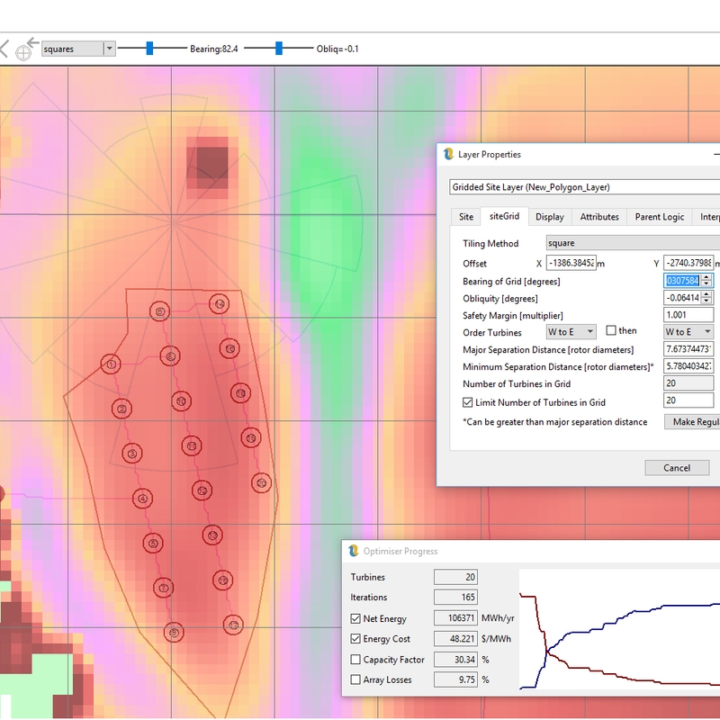 Quickly create and modify gridded turbine layouts using the user-friendly GIS interface